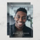 Esta sencilla y moderna invitación a una fiesta de graduación incluye tu foto personal en la parte delantera y otra en la parte trasera, con tu información de graduación en un texto blanco y moderno. Un marco blanco minimalista y clásico también decora el frente para una mirada que a los graduados les encantará.