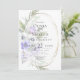 INVITACIÓN DE COMPROMISO MATRIMONIAL | Flores de acuarela y formas geométricas doradas con hojas de eucalipto, anémonas lilas y violetas, y flores de hortensias, - un marco ovalado multifacético geométrico dorado adornado con hojas de eucalipto y ramos florales. El reverso es un color coordinado complementario. Personalice el texto, el estilo de fuente, el color y el tamaño. Esta es parte de una suite completa de papelería de boda con papelería para boda, baby shower y otros eventos.