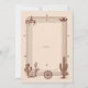 Una rústica invitación a una boda vintage de vaqueros con estilizadas letras de estilo occidental, así como un ilustracion vintage de un cactus, un volante de vagón, un vaquero montando a caballo y otros elementos rústicos occidentales, en un vintage marco de terracota con influencias art deco. Romántico y lleno de encanto rústico, es una encantadora elección para un boda de granero, un boda al aire libre, un boda de barbacoa o cualquier entorno rústico con temática de boda de vaquero de la región occidental.