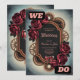 Invitación Marco Steampunk con rosas y engranajes rojos