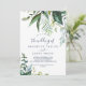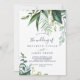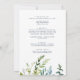 Este marco veraniego, todo en una sola invitación nupcial, es perfecto para un elegante boda de verano. El diseño botánico presenta una disposición exuberante de eucalipto de acuarela pintada, vegetación y hojas verdes con sutiles brotes de flores rosa rubor. Guarde el papel incluyendo los detalles en la parte posterior de la invitación a la boda en lugar de en una tarjeta separada. Incluya también la información de RSVP si su invitado responderá electrónicamente (opcional).
