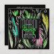 Invitación Mardi Gras Mano Dibujó Cuadrado Negro Rosa Botánic