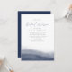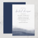 La elegante invitación a la ducha de novias costeras incluye un gradiente de color azul marino a lo largo del fondo con una curva elegante que evoca el flujo y el flujo del mar. Los detalles de tu ducha de novia aparecen en letras clásicas minimalistas con acentos manuscritos.