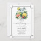 Fijar el tono para una celebración divertida y elegante con esta invitación a la ducha de novia tropical Margarita. El diseño frontal incluye un elegante ilustracion acuático con frutas cítricas, flores y un cristal de margarita adornado con un anillo de diamantes brillante. La parte trasera de la tarjeta muestra una impresionante escena de playa tropical con flores de plumería vibrantes, hojas de palma, cocos y un refrescante cóctel de margarita. Perfecto para las duchas margaritas o tropicales, esta invitación forma parte de la colección Margs and Matrimony y se puede personalizar fácilmente con los detalles del evento.