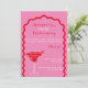 Prepárate para levantar tus gafas de margarita y celebrar a la futura novia con el tema de la fiesta de soltera Margaritas y Matrimonia. Esta divertida y festiva invitación presenta una combinación de colores rosados y rojos calientes, con un cristal de margarita y un diseño de arco ondulado. Además, incluye un itinerario de fin de semana, por lo que es fácil para sus huéspedes planear su viaje. Ya sea que estés en la ciudad por una noche salvaje o planeando una celebración más discreta, esta invitación seguramente marcará el tono para un memorable fin de semana de soltera. ¡Pida ahora y deje que empiece la fiesta!