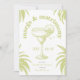 Invitación de la fiesta de soltero Margs & Matrimony con una refrescante paleta de color verde, complementada con sutiles acentos de hojas de palma que aportan un toque de vibración tropical a este tema. La parte trasera de la invitación ofrece un itinerario completo para el fin de semana, asegurando que sus invitados estén bien informados y ansiosos por las actividades que se avecinan. Perfecto para su soltera de verano o fiesta nupcial. Imagen de fondo de Freepik.