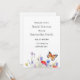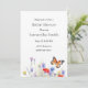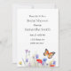 Entra en un mundo de encantamiento y celebra a la futura novia con nuestra Invitación a la ducha de novias acuarela y flores silvestres. Esta invitación no se trata solamente de un evento; es una celebración de amor, belleza y nuevos comienzos. En un entorno blanco inmaculado, las delicadas flores acuáticas bailan con tonos vivos, creando un tapiz de esplendor natural. Cada flor está pintada meticulosamente, capturando la esencia de un jardín caprichoso en plena floración. Al contemplar los intrincados motivos florales, casi se percibe la brisa suave que recorre los pétalos y la fragancia dulce de las flores silvestres que llenan el aire. Entre las flores hay bonitas mariposas, con sus alas decoradas con suaves colores pastel que evocan un sentimiento de fantasía y asombro. Simbolizando la transformación y la belleza efímera de la vida, estas criaturas etéreas añaden un aire de magia y encanto a la escena, invitando a los invitados a embarcarse en un viaje de amor y celebración. La invitación está adornada con una elegante tipografía de escritura negra, que añade un toque de sofisticación y encanto intemporal. Su sencillez permite que la belleza natural de los elementos botánicos ocupe el centro del escenario, mientras que la estética boho-moda infla el diseño con un sentido de elegancia libre. Esta invitación atrae a los adultos que aprecian la belleza de la naturaleza y la alegría del amor. Capta la esencia del romance y la promesa de nuevos comienzos, lo que lo convierte en la elección perfecta para una ducha de novia llena de calor, risas y deseos sentidos. Mientras los invitados se reúnen para celebrar a la futura novia, rodeados por la belleza de la bondad de la naturaleza, se les recordará el poder duradero del amor y la magia de nuevos comienzos.