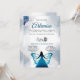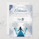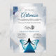 ¿Estás buscando una invitación única y elegante para celebrar tu quinceañera? Entonces te encantará esta invitación con silueta quinceañera mariposa azul con detalles en oro y bellas flores se traduce a: