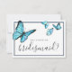 Tarjeta de boda de mariposas de acuarela azul. Opción elegante para bodas de verano. Parte de una colección de bodas. Tarjeta con opción de comida.