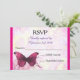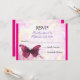 Invitación Mariposa de acuarela morada sobre RSVP rosa