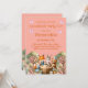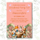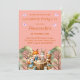 Celebra el día especial de tu pequeño con esta adorable y personalizada invitación de cumpleaños para la primera fiesta de Animales del Bosque. Con un oso, zorro, ardilla y conejo lindos que tienen una fiesta en el bosque, este diseño captura toda la magia de una reunión en el bosque. Los encantadores animales están reunidos alrededor de una mesa de tocón de árbol llena de deliciosos pasteles y bebidas, rodeados de árboles verdes. Contra un suave fondo rosa, estas invitaciones agregarán el toque perfecto a la celebración del primer cumpleaños de tu pequeña. El diseño juguetón y la caligrafía de fuente de escritura divertida hacen que esta placa sea funcional y deliciosamente elegante para la celebración del primer cumpleaños con tema de bosque.
