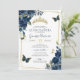 Invitación Mariposa dorada floral azul de la marina de Quince