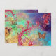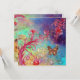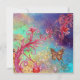Caprichosos y brillantes flores de fucsia rojas de primavera, florecen y brotan en azul verdoso, colores turquesa. Diseño único y pintura con lámina dorada y plateada.