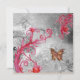 Caprichosos toques brillantes rojos y rosados ,elegantes espirales, flores y brotes en Primavera .Pintura floral colorida con hoja de plata por Bulgan Lumini (c).