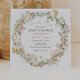 ¡Una mariposa está en camino! Esta invitación a la ducha de bebé boho cuenta con una corona de agua de pampas hierba, flores y mariposas. Personalice su información o haga clic en "Haga clic en el personalizar más adelante" para editar estilos de fuente, tamaño y colores.