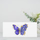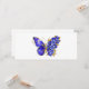 Joyería, azul, zafiro, mariposa de flor brillante con ala decorada con flores azules y preciosas con hojas de oro sobre fondo blanco.