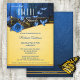 Invitación a la ducha de novias con mariposas en un bosque encantado a la medianoche con hermosos colores azul y ocre.