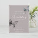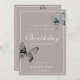 Bonita invitación de cumpleaños moderna en malva con mariposas pintadas a mano que contienen un patrón de rosa floral. Personalizable para cualquier hito de cumpleaños