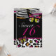 Esta invitación brillante salvaje del estampado de animales que ofrece los puntos del leopardo y las rayas de neón de la cebra, es perfecta para el dulce 16.