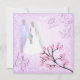 Decoración violeta de mariposas y árbol de cerezos en la parte trasera, invitación a la boda bonito