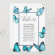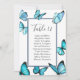 Plan de mesa de boda con mariposas de acuarela azul. Opción elegante para bodas de verano. Parte de una colección de bodas. Tarjeta con opción de comida.