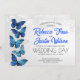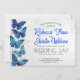 Invitación de boda romántica y moderna con mariposas Morpho y Monarca (blancas y azules) - Colores vibrantes que nunca pasan de moda.