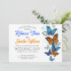 Invitación de boda romántica y moderna con mariposas Morpho y Monarca (naranja y azul) - Colores vibrantes que nunca pasan de moda.