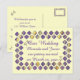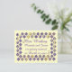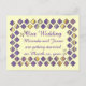 Los diamantes morados y amarillos forman un borde alrededor de las mariposas moradas y amarillas, en postales de invitación a la boda. El texto está escrito en morado sobre un fondo amarillo pálido. El texto es fácil de personalizar en los formularios de plantilla. Hay elementos coincidentes en esta tienda. Gracias por comprar en CherylsArt en Zazzle.