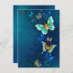 Oro volador, mariposa de joyas sobre fondo textural azul. Diseño con mariposas.