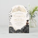 Invitación Mariposas Florales de Oro Negro Crown Quinceanera