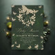 Una caprichosa corona de vegetación exuberante, salpicada de flores de hadas y un chorro de mariposas que brillan con luces de hadas y un mágico polvo, adornadas con un efecto dorado (¡esto es un efecto digital, no un verdadero Relieve metalizado o purpurina!), decoran esta invitación a la ducha de bebé neutra en invierno de primavera con una temática forestal encantada y una temática de mariposa, además de fondo verde cazador. Una invitación elegante y moderna para una ducha de cuento de hadas. Perfecto para madres y padres que aman el escenario de los cuentos de hadas, el tema del bosque de hadas o el jardín de hadas, el tema de la mariposa y el verde cazador, y que quieren una celebración neutral de género.
