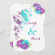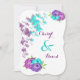 Una fabulosa invitación a la boda para un boda de primavera o verano; floridas y floridas mariposas floridas en bonito, en agradables tonos azul verde azulado y violeta. Esta bonita imagen vintage impresionará a los invitados y marcará el tono de su día de boda perfecto.