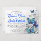 Invitación de boda romántica y moderna con mariposas Morfo y Monarca (blancas y azules) - Colores vibrantes que nunca pasan de moda.