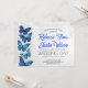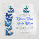 Invitación de boda romántica y moderna con mariposas Morpho y Monarca (blancas y azules) - Colores vibrantes que nunca pasan de moda.