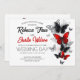 Invitación de boda romántica y moderna con mariposas Morpho y Monarca (rojas y negras) - Colores vibrantes que nunca pasan de moda.