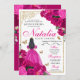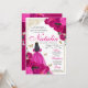 Invitación de cumpleaños a la Quinceanera floral rosa y dorada de Fuchsia