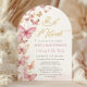 Personalice esta encantadora invitación para arco de Bat Mitzvah de mariposas rosadas de manera fácil y rápida. Simplemente haga clic en el botón Editar usando la herramienta de diseño para editar aún más los textos, cambiar las fuentes y los colores de las fuentes. Artículos coincidentes disponibles en la tienda. (c) Somerset Fine Paperie