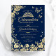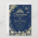 Invitación a la celebración de Quinceanera, oro azul marino. Presenta letra de guión, mariposas, rosas de oro y tiara. Perfecto para una elegante celebración de glam al estilo de la princesa. Personaliza con tus propios detalles. Invitaciones Zazzle impresas o una plantilla imprimible digital de descarga instantánea.