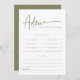 Esta tarjeta de consejos y predicciones para la ducha para bebés cuenta con un tipografía manuscrita con una combinación de color verde oliva y blanco. Esta tarjeta de consejo para bebés es perfecta para tu evento de ducha de bebé.