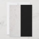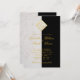 La tarjeta está dividida en dos verticalmente: una parte de mármol blanco y una tarjeta negra. Un monograma caligráfico en cuadrado de falso oro los une (tiene 2 iniciales y un fondo de mármol blanco). El texto es dorado, los nombres están escritos con una escritura caligráfica dorada.