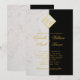 Invitación Mármol Blanco Negro Monograma Oro Boda Elegante