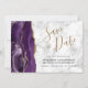 Esta elegante y moderna tarjeta de fecha guarda un borde de agate color morado con un falso purpurina de oro. El texto del personalizable combina el guión de escritura a mano de color dorado con el copperplate negro y las fuentes cursivas sobre un fondo de mármol blanco y gris. El reverso presenta un diseño de agate morado y dorado a juego.