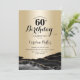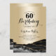 Invitación a la fiesta de cumpleaños 60 años de color negro y oro. Diseño elegante y moderno con fondo de mármol de piedra en el fondo de la geoda, oro falso purpurina y letra de escritura tipográfica. La carta de invitación de moda es perfecta para una elegante celebración del cumpleaños de las mujeres. Invitaciones Zazzle impresas o una plantilla imprimible digital de descarga instantánea.