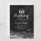 Invitación a la fiesta de cumpleaños 60 años de negro y plata. Elegante diseño moderno con fondo geodésico de mármol agate acuarela, letra falsa purpurina plateada y tipografía. La carta de invitación de moda es perfecta para una elegante celebración del cumpleaños de las mujeres. Invitaciones Zazzle impresas o una plantilla imprimible digital de descarga instantánea.