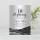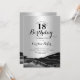 Invitación a la fiesta de cumpleaños 18 años de negro y plata. Diseño elegante y moderno con fondo de mármol de piedra de fondo geodésico, letra falsa purpurina plateada y tipografía. La carta de invitación de moda es perfecta para una elegante celebración del cumpleaños de las mujeres. Invitaciones Zazzle impresas o una plantilla imprimible digital de descarga instantánea.