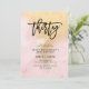 Esta brillante y elegante invitación a la fiesta de cumpleaños número 30 cuenta con un lujoso fondo de mármol rosa y oro falso, con una tipografía de escritura a la moda en negro.