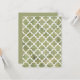 Un elegante enlosado marroquí de azulejos blancos sobre un mármol verde musgo.