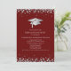 This modern design features a graduation hat and confetti in silver on a background of maroon with white text.