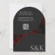 La elegancia moderna se encuentra con la tradición: Maroon Minimal Elegante Musulmán Código QR Invitación a la Boda Arch Abraza la elegancia atemporal con la Elegante Maroon Minimal Muslim QR Code Arch Invitation. Esta cautivadora invitación combina perfectamente la funcionalidad moderna con los toques islámicos tradicionales, creando una primera impresión sofisticada e inolvidable para sus huéspedes. Desvelando el Diseño: Elegancia texturizada: La invitación pone el escenario con una cautivadora combinación de marrón texturizado y tonos negros al estilo arcaico. Esto crea una sensación de profundidad e intriga visual. Minimalismo moderno: una capa de negro liso toma la forma de un semiarco vertical, añadiendo un toque de elegancia moderna y enfatizando el texto dentro. Hermosa escritura: El frente de la invitación presenta un caudal de información cuidadosamente seleccionado: caligrafía árabe: la "Bismillah" auspiciosa se muestra de manera prominente en la parte superior, invocando bendiciones a tu unión. Rúbricas: Siguiendo la caligrafía, los detalles de la invitación se guían por unas líneas claras y modernas. Nombres: Los nombres de la novia y del novio se muestran de forma prominente en el fondo negro, asegurándose de que ocupen el centro de la escena. Detalles del boda: La fecha, hora, lugar de boda con sus detalles de ubicación (ciudad y estado), y una nota sobre la recepción a seguir se presentan en un blanco claro y elegante. El reverso con un giro moderno: RSVP con facilidad: La parte trasera de la invitación incluye un audaz tipo de letra en blanco que proclama "Responder amablemente", lo que lleva a los invitados a RSVP. Información detallada: Un espacio dedicado permite incluir cualquier información adicional que desee compartir, como código de vestimenta o instrucciones especiales. Conveniencia digital: un código QR escaneado elimina la necesidad de tarjetas RSVP separadas. Los huéspedes pueden escanear el código para acceder al sitio web de su boda o a RSVP en línea. Integración de sitios web: La URL del sitio web también se muestra de forma destacada, proporcionando a los invitados otra manera de acceder a toda la información de su boda. Monograma moderno: La parte inferior de la parte posterior presenta las iniciales en negrita en blanco del novio y la novia, añadiendo un toque de personalización.