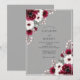 Deep maroon peonies and crisp white blossoms are paired with delicate snowy berries in this winter-inspired design. The cool charcoal gray background provides a striking contrast to the rich floral tones. This botanical arrangement offers a sophisticated and polished aesthetic for seasonal nuptials.